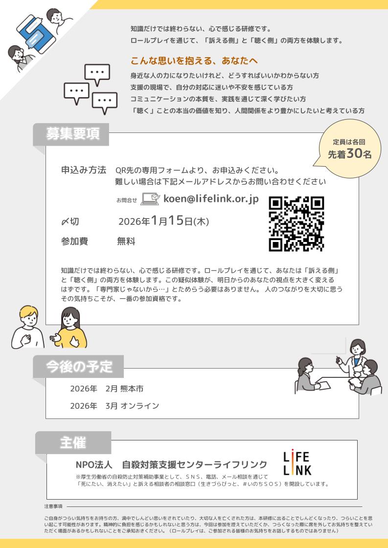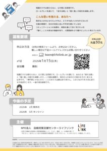 NPO法人 ライフリンクより「『死にたい』と言われたら。ロールプレイを通じた相談支援研修」受講者募集のお知らせ